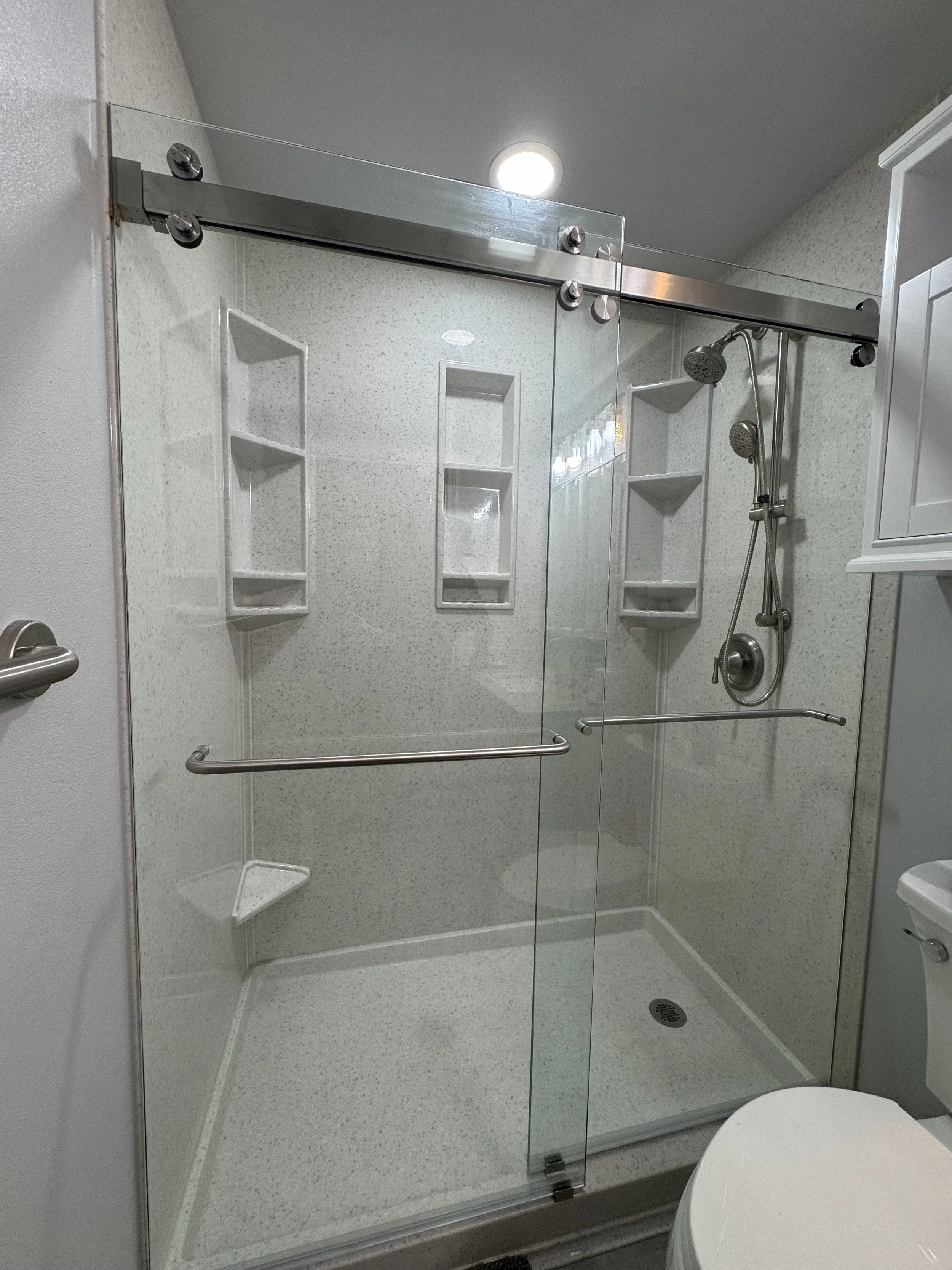 Whether you're upgrading an outdated unit or finishing a full remodel, we custom measure every opening to ensure a precise fit and clean, professional installation. Choose from sliding doors, hinged swing doors, custom glass panels, and a range of hardware finishes to match your bathroom’s design. We work with clear, frosted, patterned, and specialty glass to create a look that feels both functional and refined.